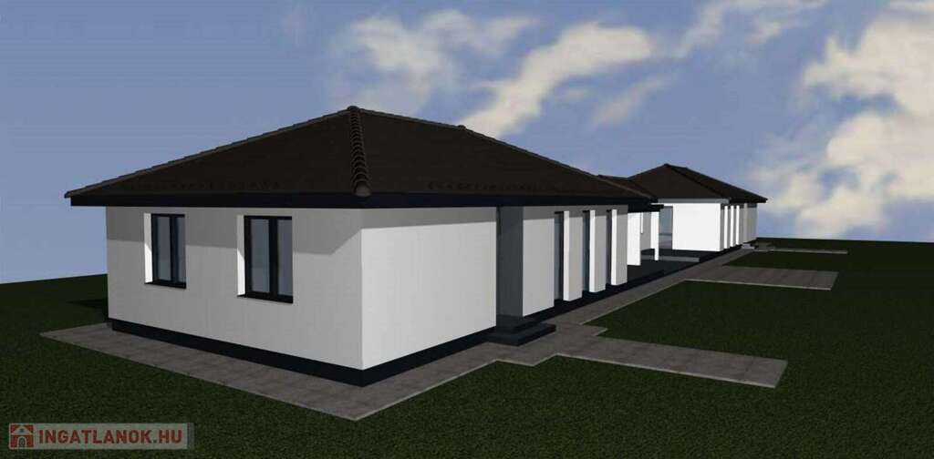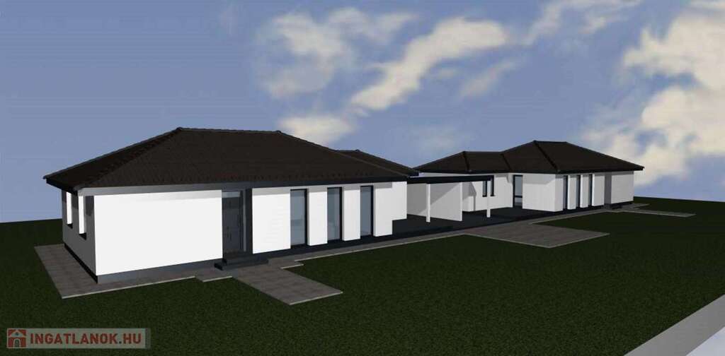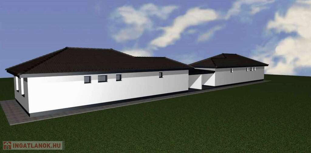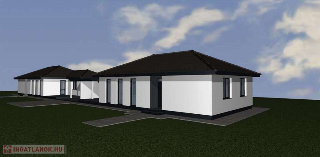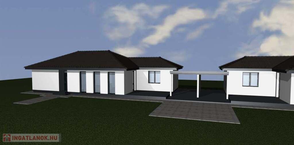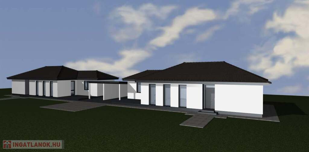 1 ingatlan: 90 nm + 17 nm Garázs  Nappali, Étkező, Konyha + 3 szoba. 500 nm-es telek 65 M FT.