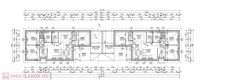 2 ingatlan: 90 nm + 17 nm Garázs  Nappali, Étkező, Konyha + 3 szoba.  1500 nm-es telek, 69 M FT.