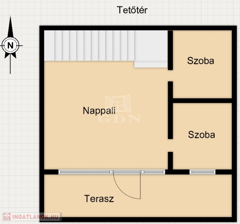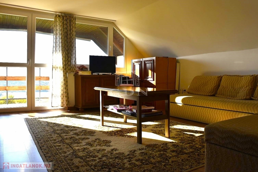 - A felső szinten egy otthonos, napfényes, tágas nappaliból nyílik az erkély, ahonnan csodálatos kilátás tárul elénk. Itt még két félszoba kapott helyett.