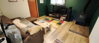 A maradék 23 m² egy zárt terasz, télikert, amely akár további szobává is alakítható.Az ingatlan 3 éve teljes körű felújításon esett át: új víz- és villanyvezetékek, laminált parketta, gipszkartonozás, modern fürdő és konyha. A ház szigetelt, betonfödémmel épült, így a tetőtér is beépíthető.