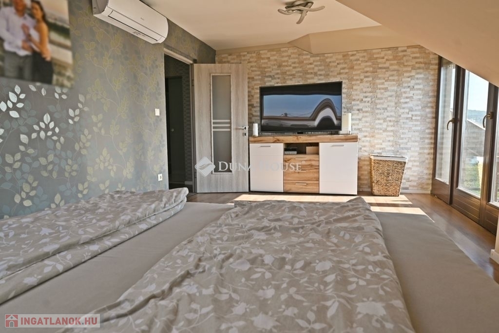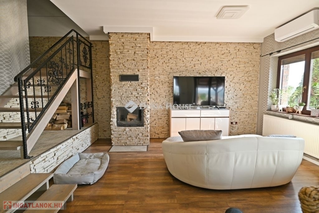 Pécs egyik legkeresettebb zöldövezeti részén, Makárban, 147-es, 4 szobás, modern ház, mely 1000 m2-es, telken helyezkedik el. A ház legkorszerűbb építőanyagokból, magas műszaki tartalommal, kifogástalan állapotú, modern technológiákkal, kiváló hőszigeteléssel épült, így hosszú távon is energiatakarékos és értékálló otthon.Főbb jellemzők:-147 m2-es lakótér, kiváló elrendezésű, tágas és világos- szobák száma: 4- saját önálló garázs- 54 m2 fedett terasz, tökéletes családi és baráti összejövetelekhez- örökpanorámás kilátás a városra és a Mecsekre- utcafronttól meredek térkövezett felhajtó a garázshoz, - autóval történő megközelítés biztosítottExtrák:- jakuzzi - privát wellness az otthonodban- riasztórendszer - maximális biztonság-klímaberendezés - kellemes hőmérséklet egész éveben- elektromos kapu - modern és kényelmes bejutás- külső tokos alumínium elektro9mos redőnyök - extra komfort és biztonság- beépített okos mosógép- gázfűtés - gazdaságos üzemeltetés- kandalló - hangulatos kiegészítő és alternatív fűtési lehetőségAz ingatlan csendes, elegáns környezetben helyezkedik el, mégis közel a belvároshoz. A környék kiváló infrastruktúrával rendelkezik, iskola, óvoda, bevásárlási lehetőségek és tömegközlekedés a közelben. A lenyűgöző panoráma és a prémium felszereltség együttese egyedülálló, értékálló otthont kínál igényes családok vagy befektetők számára.