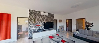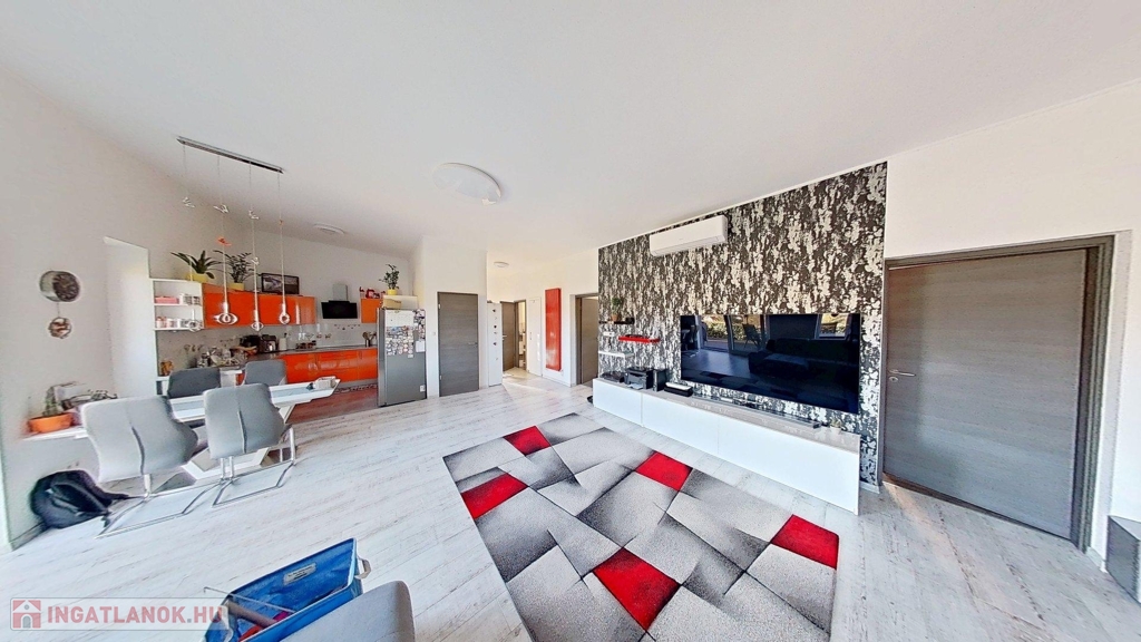 A ház elosztása nem is lehetne jobb, az egy szinten minden a hatalmas nappaliból nyílik. Innen nyílik 3 hálószoba - a szülői háló ráadásul nagy gardrób szobával is rendelkezik - fürdő, valamint innen lehet kimenni a páratlan panorámával bíró, 20 nm-es teraszra is.
