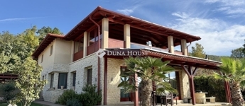 Mecsekoldali panorámás, mediterrán stílusú Prémium családi ház!Eladásra kínálunk egy 2014-ben épült, prémium kategóriás mediterrán családi házat a Mecsekoldal egyik legszebb panorámájú részén. Az ingatlan háromszintes, összesen 275 m² -es, és minden részletében a minőséget és igényességet képviseli.A tágas, napfényes terekkel rendelkező otthon tökéletes választás azoknak, akik a modern technológia, a természet és a kifinomult esztétika harmóniáját keresik. A ház örökpanorámás kilátást kínál a városra és a Mecsek zöldjeire, miközben a környék nyugalma igazi otthoni hangulatot teremt.A belső terek átgondolt elrendezésűek: tágas nappali, kényelmes étkező, vadonatúj, modern konyha, két gyermekszoba, egy hálószoba, két gardrób, két fürdőszoba és két különálló mosdó biztosítja a család kényelmét. A házhoz két nagyméretű terasz, egy óriási pince, valamint gondozott, mediterrán hangulatú kert tartozik automata öntözőrendszerrel és játszótérrel.A kert központi eleme a feszített víztükrű, fűthető-hűthető 4x8 méteres medence, amely masszázs funkcióval és fejzuhannyal is felszerelt, így egész évben a pihenés és feltöltődés helyszíne lehet. A fedett terasz kézzel faragott, rétegragasztott fa szerkezettel, toló-nyitható ablakrendszerrel készült, így a külső és belső terek harmonikusan összekapcsolódnak.Műszaki jellemzőkGlück Kft. által kézzel készített, hossztoldásmentes, rétegragasztott Borovi fenyő nyílászárók, háromrétegű üvegezésselRehau fűtésrendszer: kizárólag padló- és falfűtés, radiátorok nélkülFűtés: gáz, áram, valamint vízteres kandalló44 cm vastag Porotherm tégla + 12 cm grafit hőszigetelés megfelel passzívház követelményeknek10 kW-os szaldós napelemes rendszer, rendkívül alacsony rezsiköltséggel (csak víz és alapdíjak)Acélszerkezetű, hőszigetelt tető Bramac Római Protector cserépfedésselWifis, távirányítható, hőszigetelt alumínium redőnyök szúnyoghálóvalT-Home optikai internet akár 2 Gb/s sebességgelEz a panorámás, energiatakarékos, exkluzív Mecsekoldali villa ritka lehetőség azok számára, akik kompromisszumok nélkül keresnek egy modern, elegáns és egyben otthonos életteret Pécs egyik legnívósabb környékén.Bővebb információért, megtekintésért várom hívását!
