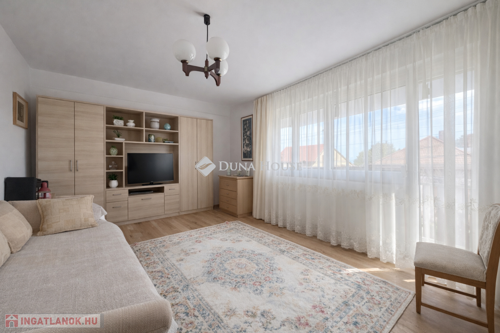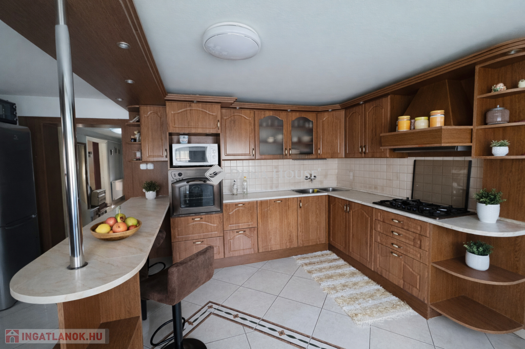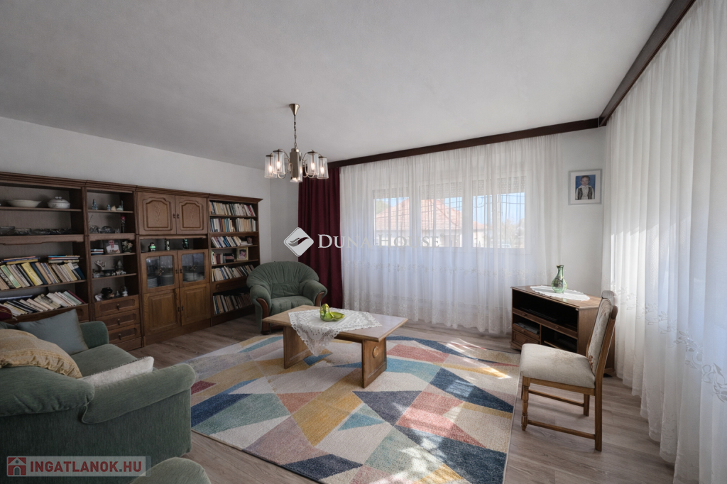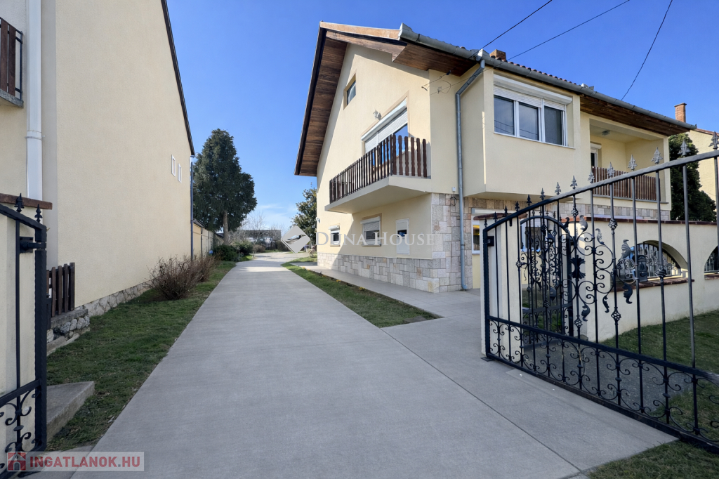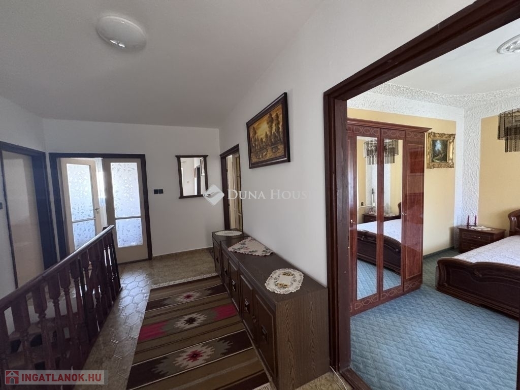 Tágas családi ház mini garzon lakással eladó Pogányban Pécstől mindössze 6 km-rePécstől mindössze 6 km-re, Pogány csendes és nyugodt részén eladóvá vált egy belső kétszintes, rendkívül tágas családi ház, amely ideális választás nagycsaládosoknak, több generáció számára vagy akár vállalkozási célra is.Az ingatlan egyik különlegessége, hogy a főépület mellett egy különálló mini garzon lakás is tartozik hozzá, amely lakásként, irodaként, üzlethelyiségként vagy vendéglakásként is könnyedén hasznosítható.A ház elrendezéseEmeleti lakótér4 különálló, kifejezetten tágas hálószobafürdőszobaminden szobához saját erkély vanA szobák mérete az ingatlan egyik legnagyobb előnye: nagyon tágas, kényelmes életteret biztosítanak a család minden tagja számára.Földszinti lakótér21 m²-es konyhaétkező35 m²-es világos nappali, amely tökéletes helyszíne a családi együttléteknekMűszaki jellemzőkAz ingatlan az elmúlt években több korszerűsítésen is átesett:3 éve cserélt nyílászárók, redőnnyel felszerelveSzigetelt épület, szigetelt tető illetve bramac tető van az épületen3 éves kondenzációs gázkazánnapelem rendszer, amely az ingatlan teljes áramfogyasztását fedeziEnnek köszönhetően a ház fenntartási költsége rendkívül kedvező.Telek és melléképületekAz ingatlanhoz több praktikus kiegészítő is tartozik:garázsfedett kocsibeállónyári konyhagazdálkodásra alkalmas melléképületekÍgy az ingatlan gazdálkodásra vagy állattartásra is kiváló lehetőséget biztosít.ElhelyezkedésPogány Pécstől néhány perc autóútra található, mégis nyugodt, családias környezetet kínál.