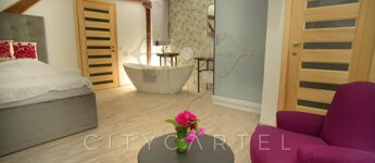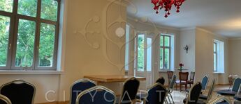 - Földszint: elegáns előtér és hall, 120 nm-es bálterem (amely alkalmas céges rendezvények, kisebb konferenciák, családi események és esküvői vacsorák megtartására 40-50 főig), egy hálószoba káddal, két fürdőszoba, konyha, kiszolgáló területek