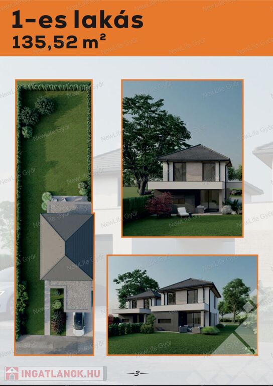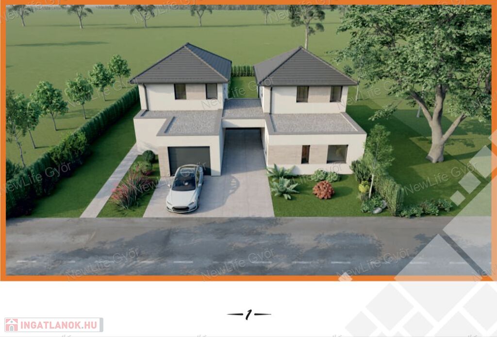 Eladó új építésű ikerház Rábapatona csendes utcájában, amely emeltszintű fűtéskész állapotban kerül eladásra. Az ingatlan 989 nm-es telken helyezkedik el, a két szintes lakások külön kerülnek értékesítésre. A két lakás között került kialakításra egy fedett gépjárműbeálló, ezáltal nincs közös faluk, így teljes mértékben önálló házként funkcionálnak, megteremtve ezzel a tökéletes magánszférát.