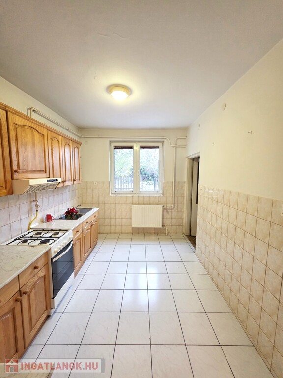 A 110 m2-es, téglából épült, beton alappal rendelkező ház egy 1530 m2-es telken fekszik, melyen termő gyümölcsfák várják az új tulajdonost, ráadásul a telek praktikusan három részre osztott.