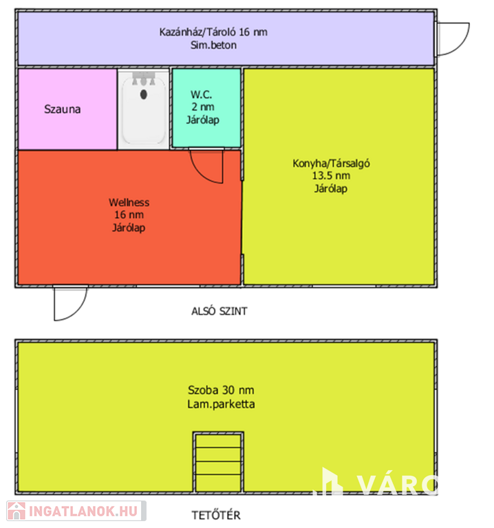 - Extra lehetőségek: Beépített tetőtér, szauna, saját tároló