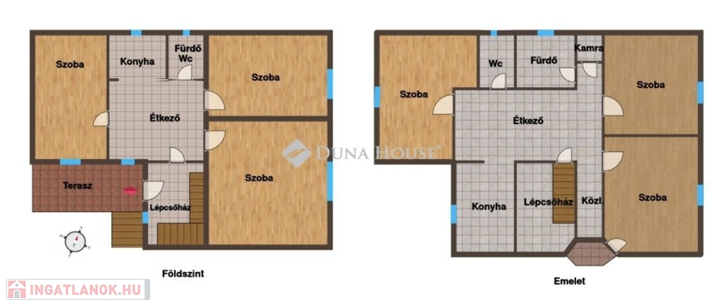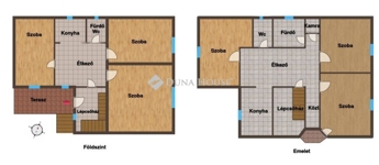 Az ingatlan alsó és felső szintjén is 3-3 szoba, étkező, konyha, fürdőszoba, wc is helyet kapott, melyek egy, a lakótértől elszeparált lépcsőházból megközelíthetőek, így könnyedén kétlakásos társasházzá is átalakítható.