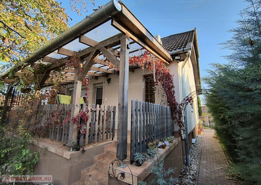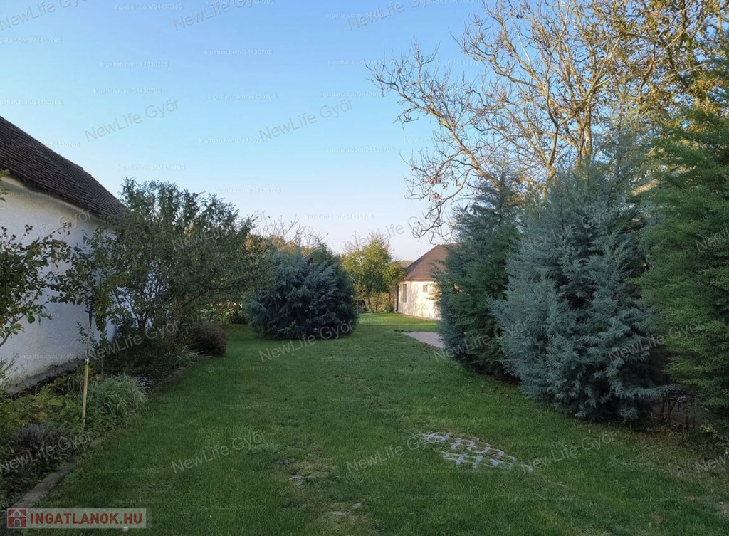 A kert egy része teljesen körbe van kerítve, játszótér, örökzöldek, fúrt kút található benne.