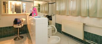 Az egyik lakrész nappalija alatt egy eredetileg beépített belső medence található. Jelenleg fapadlóval lefedve műhelyként / tárolóként funkcionál, de minimális ráfordítással újra az otthoni wellness központjává alakítható.