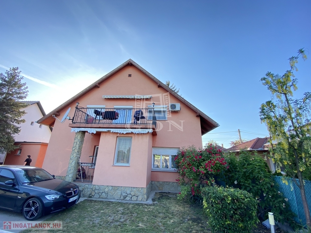 Szigethalmon 105+100 m2 lakóterületű, külön-külön összkomfortos, légkondicionált kétlakásos családi ház, dupla garázzsal, medencével, 720 m2 összközműves, gondozott telekkel eladó.
