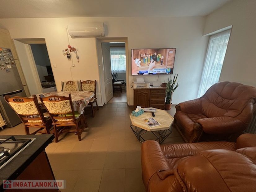 Szigethalmon Piactól és hév megállótól 20 perc sétára 2010-ben épült tégla építésű földszintes 52 nm lakóterű, 2 szoba összkomfortos lakrész 275 nm saját használatú telekkel , teljes berendezéssel,bútorokkal eladó.