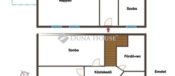 -Földszint:tágas, világos amerikai konyhás nappali étkezővel, amely közvetlenül kapcsolódik a fedett teraszhoz, praktikus tároló a lépcső alatt, fürdőszoba, külön mellékhelyiség, 1 szoba, amely alkalmas lehet dolgozónak, vendégszobának vagy akár hálónak