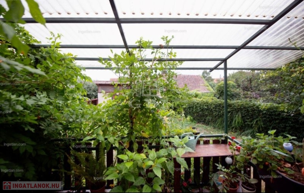 -a kertben szaletli, térkövezett rész medencének, pince, több termő gyümölcsfa: meggy, cseresznye, füge, sárgabarack, körte...