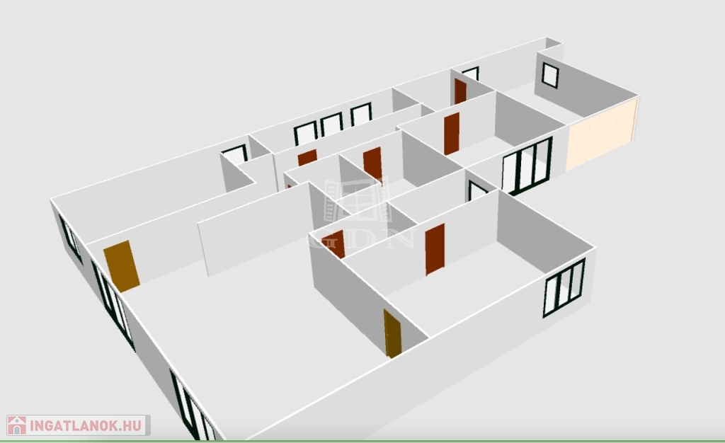 Az otthon helyiségei: amerikai konyhás nappali terasz kapcsolattal, 3 külön bejáratú hálószoba egy teraszkapcsolattal,2 fürdőszoba (egyik teljesen kész), mosó konyha/ gépészeti helyiség, kamra, közlekedő, két állásos garázs, két terasz egyenként 25 és 70 nm alapterülettel.
