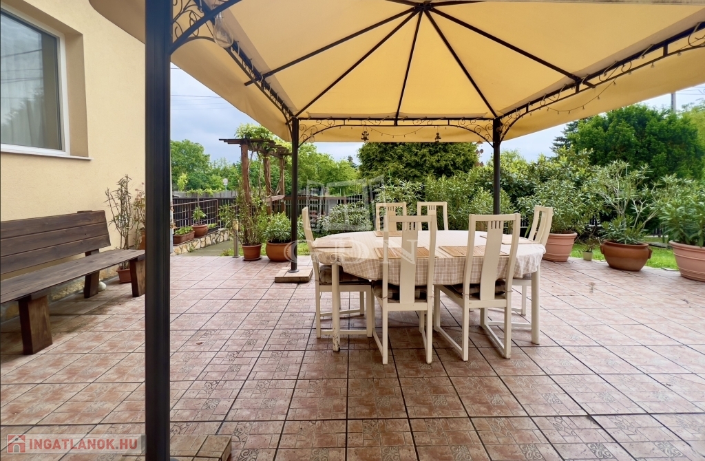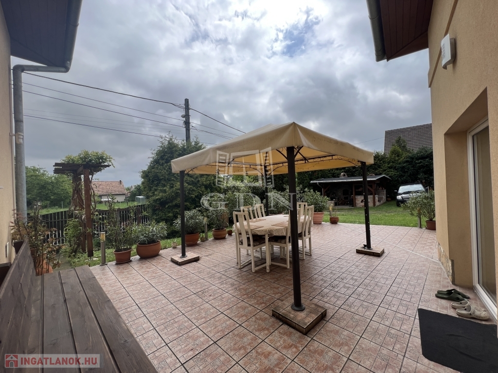 Az ingatlanhoz tartozik egy nagy terasz is, ahol kényelmesen pihenhetünk vagy barátainkkal találkozhatunk a szabadban. A kertben pedig egy kerti sütőtető található, amely ideális helyszín a grillpartikhoz és családi összejövetelekhez.