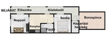 -összesen 85nm-es( konyha, fürdőszoba, 1 nappali, 1 lakószoba, előszoba, közlekedő, háztartási helyiség és egy borospince)