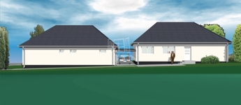 A hátsó ikerházfélhez 460 m²-es önálló telekrész tartozik.