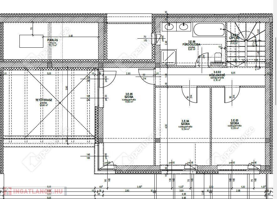 Helyiségek: nappali + étkező + konyha, 3 hálószoba, fürdőszoba, külön WC, háztartási helyiség, terasz, saját kertkapcsolat