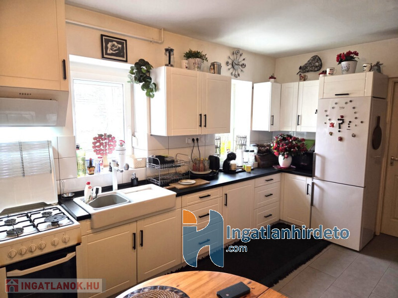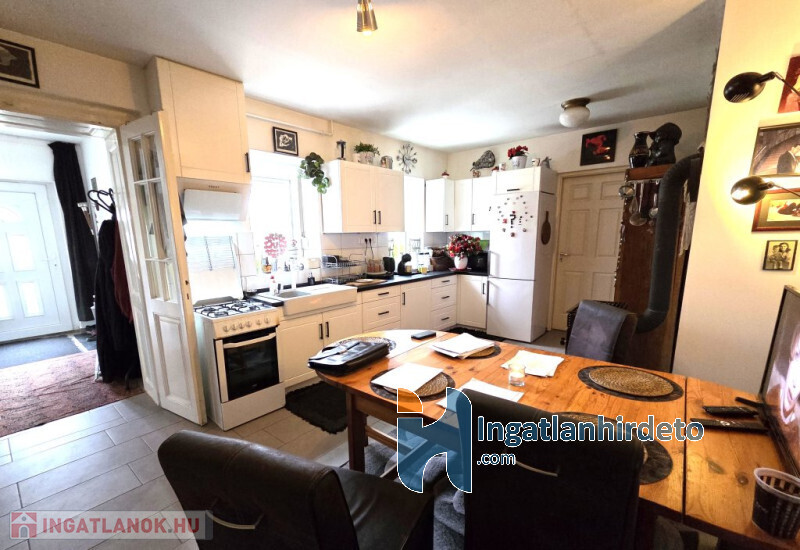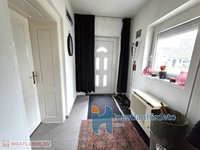 Elhelyezkedése: Belterület Tájolása: Déli tájolású Állapota: Használt - felújított Komfort besorolása: összkomfortos Építési éve: 1950 Alapterülete: 150 m2 Telekterülete: 6 165 m2 Szobák száma: 4szoba Felújított: Felújított Felújítás éve: 2004 Felújítás során elvégzett munkák: Festés, Villanyrendszer csere, Vízrendszer csere, Fűtésrendszer csere, Csempe csere, Járólap csere, Parketta csere, Fűrdőszobai szaniterek cseréje, Belső átépítés, Tetőfelújítás, Új külső vakolat, Nyílászárók cseréje, Hőszigetelt nyílászárók beépítése, Redőnycsere Közművek: Gáz, Víz, Villany, Csatorna Gázellátás: Vezetékes Vízellátás: Vezetékes víz Melegvíz-ellátás: Villanybojler Áramellátás: 230V Fűtés módja: Gáz, Fa Fűtés típusa: Konvektoros, Kandalló Homlokzat állapot: Jó Építési mód: Tégla Tető formája: Magas Tető anyaga: Cserép Parkolási lehetőség: Telken Kilátás: Utcafronti kilátás, Udvari kilátás Jellemzői: Csendes környék, Jó közlekedés, Két bejárat, Redőny, Udvari terasz, Beépített konyhabútor, Kert, Kerítés, Zöldterület Energetikai besorolás: G Egyéb jellemzők: Terasz, Melléképület Tv, Internet: Kábeltévé, Internet, Vezetékes telefon Közelben: Iskola, Óvoda, Orvosi rendelő, Bolt, Gyógyszertár, Postahivatal, Vendéglátó egység Terhelések: Tehermentes ingatlan Eladásra vonatkozó információk: Kizárólag magánszemélyek jelentkezését várjuk