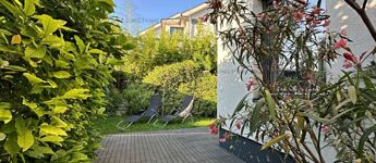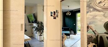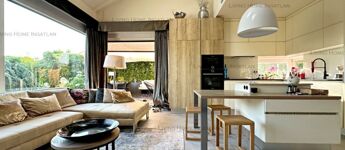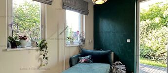 For sale a modern semi-detached house at the meeting point of the Pilis and the Buda Hills, in Üröm, on Rókahegy. The 440 sqm intimate garden with Mediterranean and other ornamental plants, rock garden, relaxing corner and large terrace complete the tranquility and recharging of this home.
