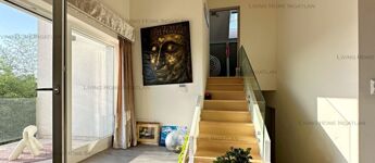 A különleges építészeti megoldásokkal kialakított terek és a szinteltolás tágassá, élhetővé teszik az ingatlant. A galériáról egyaránt gyönyörű a panoráma nyílik a környező hegyekre és a belső terekre is. Minőségi burkolatok, egyedi nyílászárók, egységes dizájn és harmonikus színek jellemzik az egész házat.