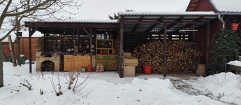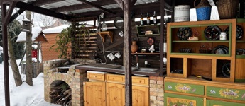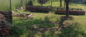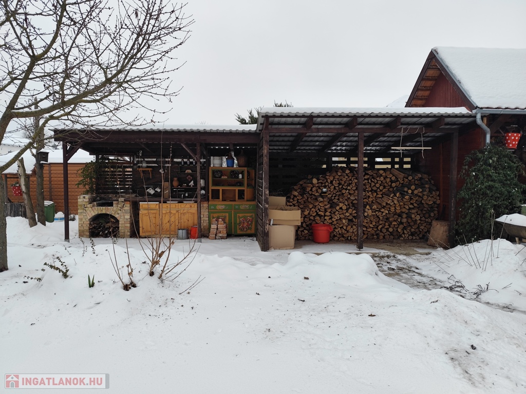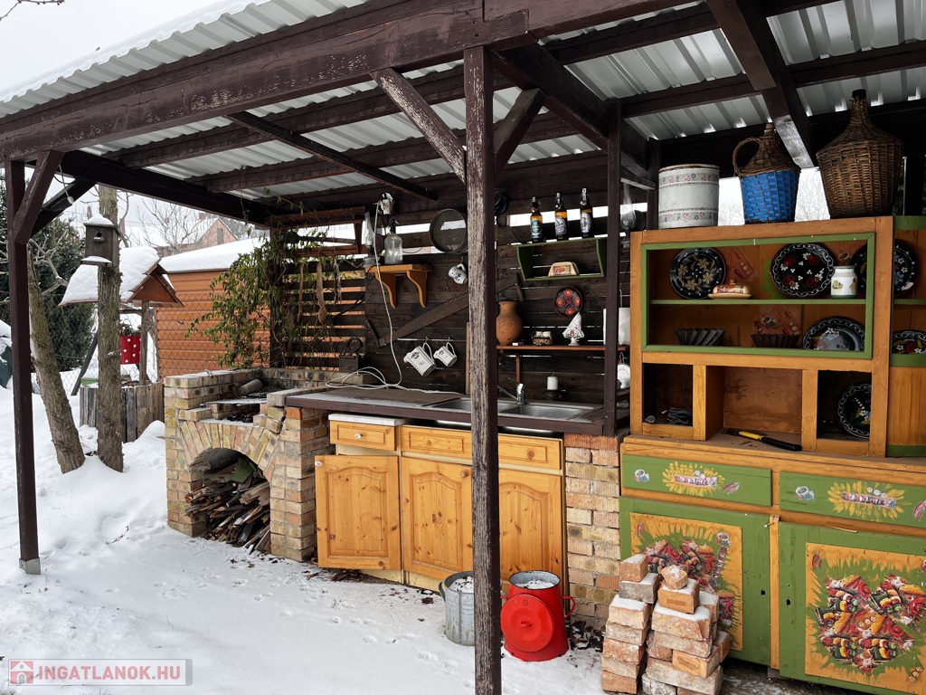 A közel 1000 m²-es telek nem egyszerűen nagy, hanem tudatosan kialakított. A kert minden pontja használható, élhető, szerethető. Kézzel készített aprótéglás sütögető, fatároló, külön műhely és garázs szolgálja a mindennapokat. A magaságyások, a málna ültetvény, piros- és feketeribizli, josta és egres bokrok, a cseresznye- és szilvafa, a méhlegelő és a rovarhotel mind azt a szemléletet tükrözik, ahol a természet nem dísz, hanem szerves része az életnek.