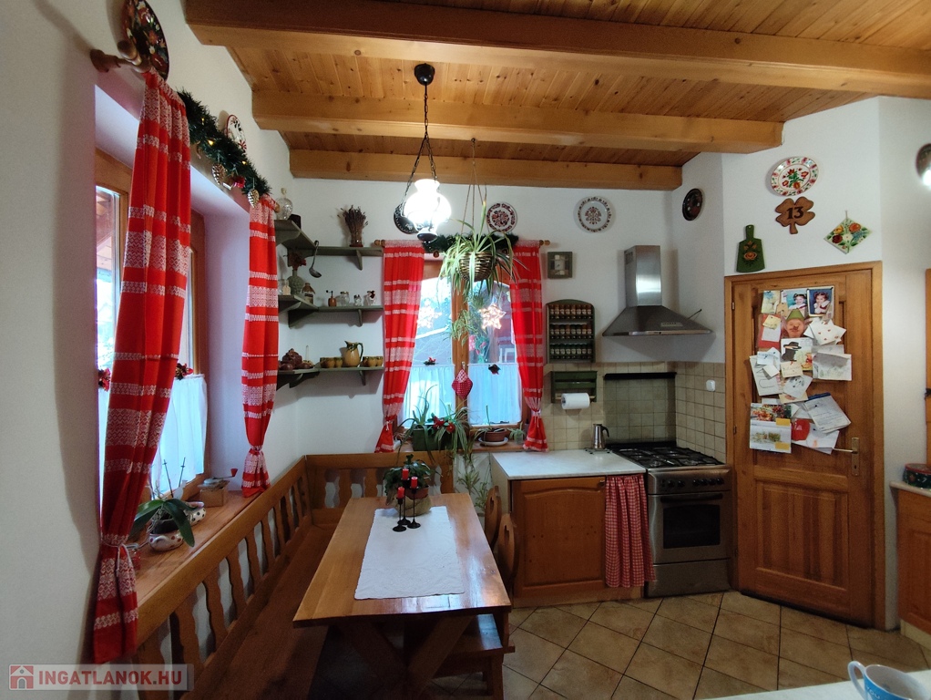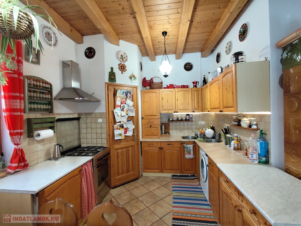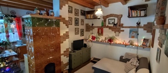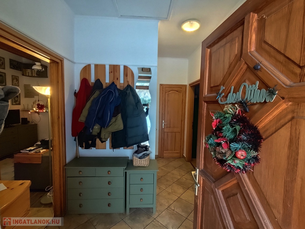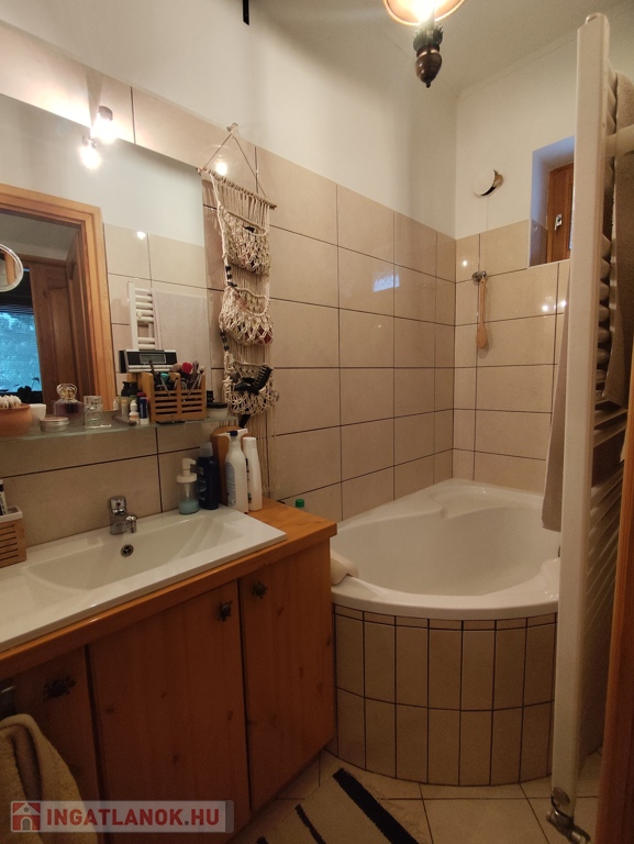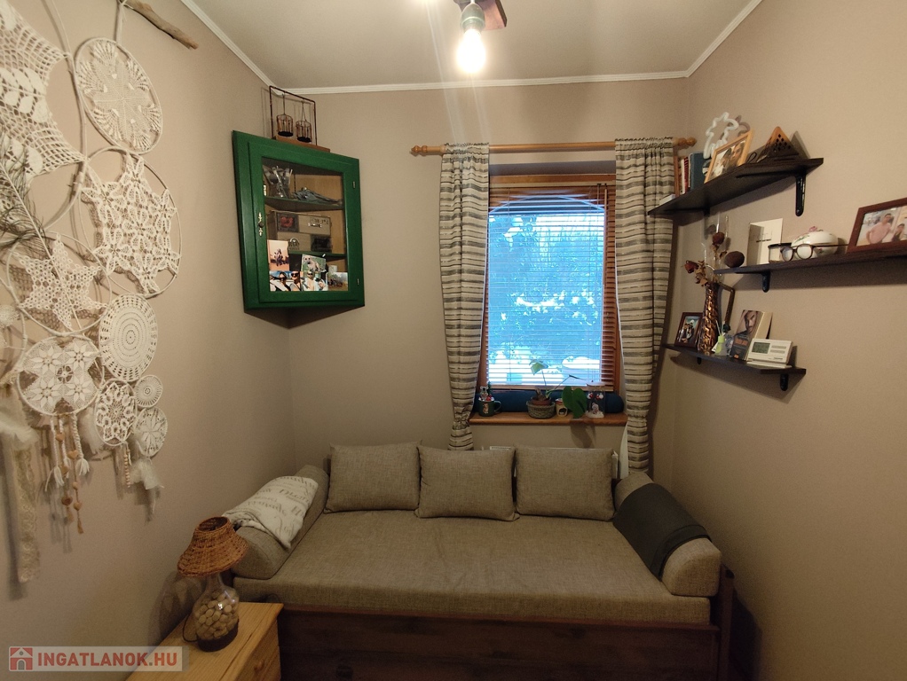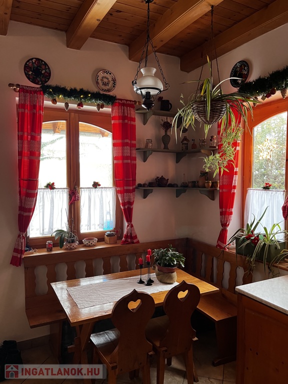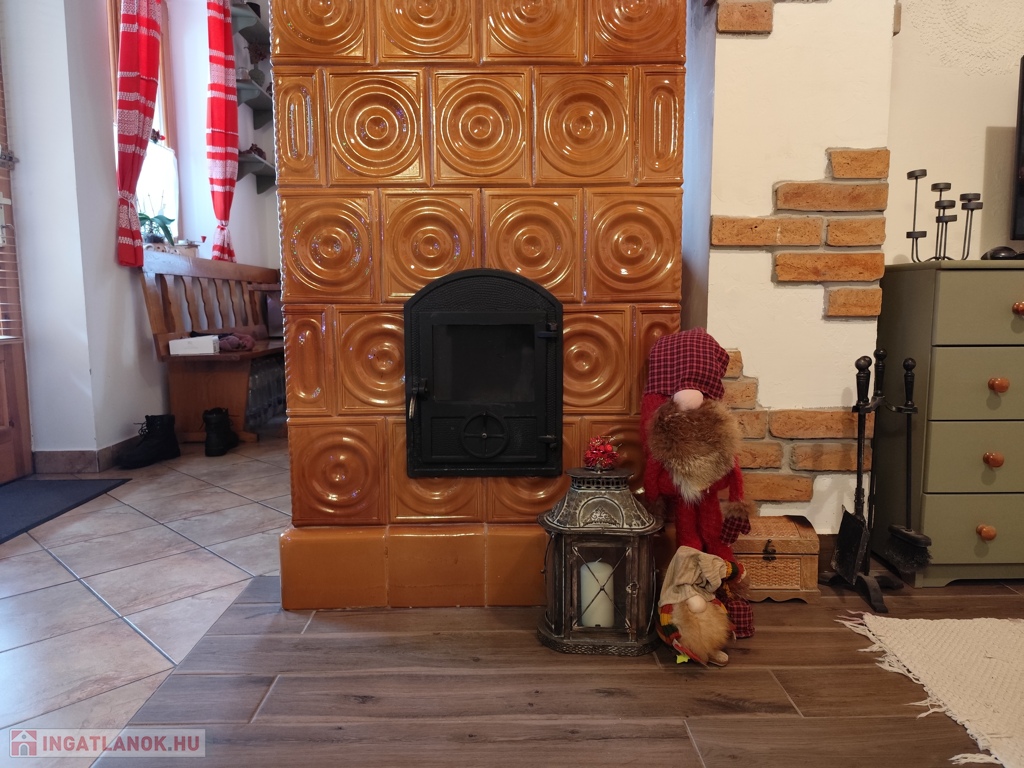 A 2005-ben épült, jó állapotú téglaház természetes anyaghasználattal, cseréptetővel, és meleg hangulatával azonnal bizalmat ébreszt: fa nyílászárók, látszó fagerendás mennyezet, világos, arányos terek. A gázkazán mellett egy gyönyörű cserépkályha is helyet kapott 2024 őszén – nemcsak valódi hangulatot kölcsönöz a mindennapokhoz, hanem az egész házat ellátó teljes értékű önálló fűtési alternatívaként szolgál.