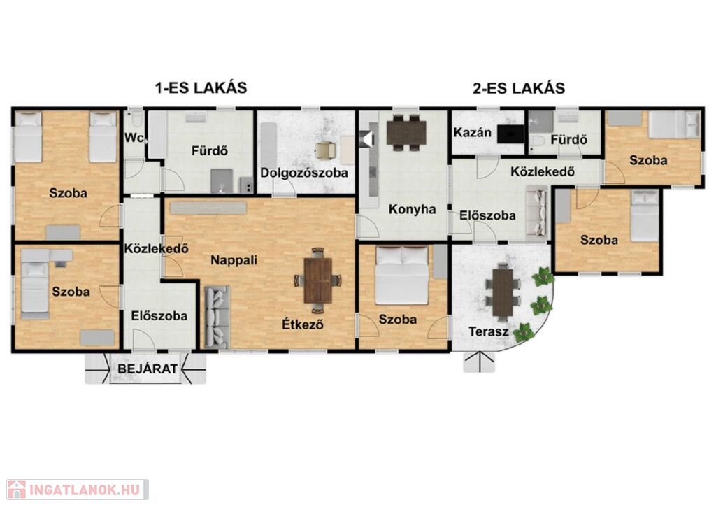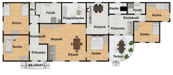 -205nm-es családi ház(2 lakássá bontható(konyha, 2 fürdőszoba, nappali, 6 szoba, előszoba, közlekedő és egy különálló wc)) 20nm-es terasz,4nm-es és egy 5nm-es tároló