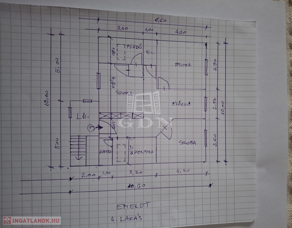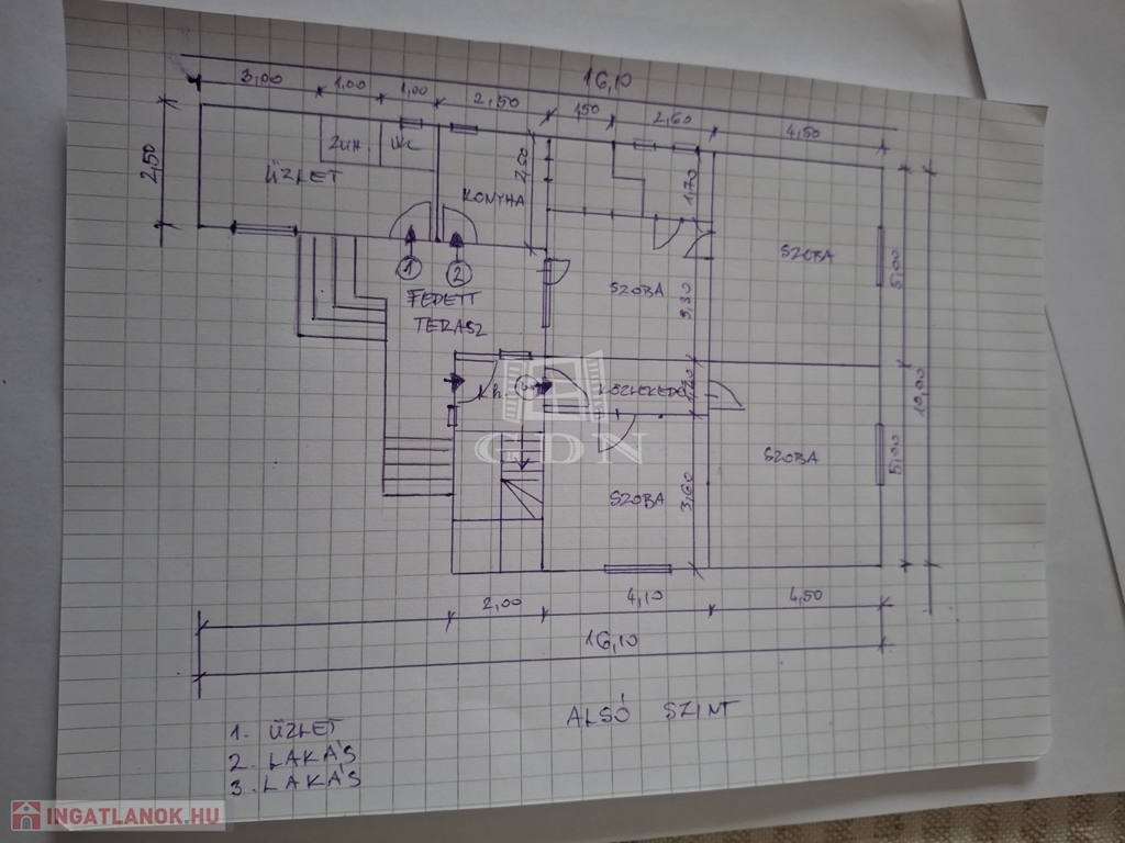 2.lakás: kb 40 nm-es, földszinti, több helyiségből álló, felújítandó de lakható.