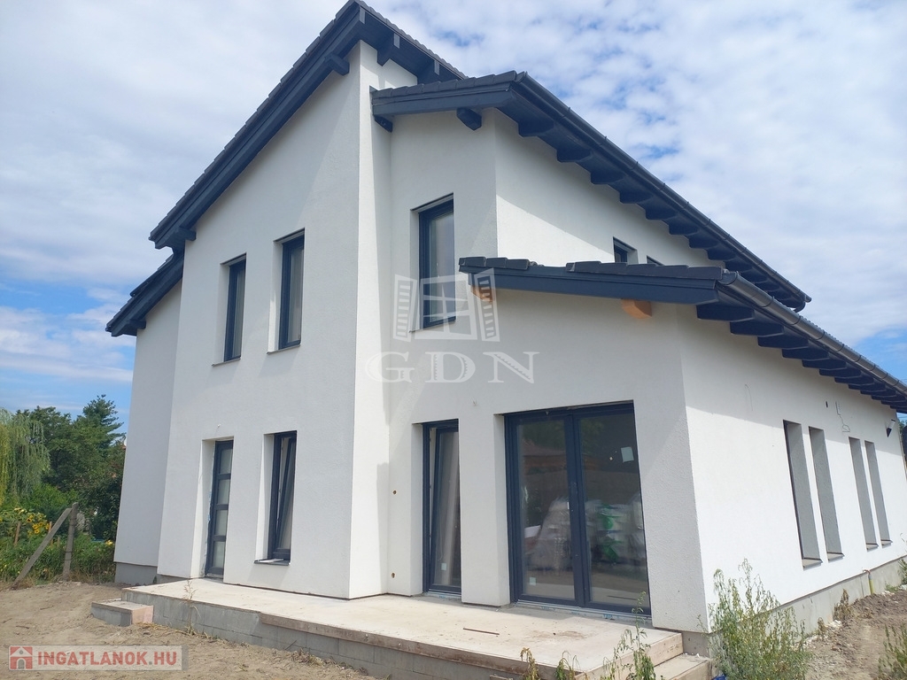 4707. Velence újtelepi részén, csendes utcában, vasútállomástól, tóparttól 10 perces séta távolságra , újépítésű, kétlakásos ikerházban, 288 nm saját kertrésszel, gépkocsi beállóval rendelkező, energia takarékos, belső kétszintes lakás eladó.