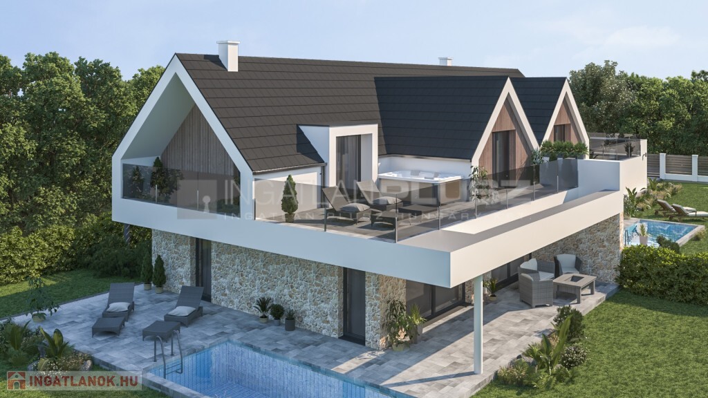 Velence ezen ingatlana egy teljesen szeparált, családiház kinézetű, két házrészből álló, jogilag albetétesített „ikerház”/”társasház”/két gerációs családi ház, melynek nyugati ingatlanára vonatkozik az ár, medence és kertépítés nélkül. Ezen ingatlan bruttó mérete 229nm, melyből a ház belső mérete 137nm, a földszinti fedett terasz 45,76nm, míg az emeleti, a Velencei-tóra panorámás terasz 35,81nm és a Bencehegyi Kilátóra panorámás erkély pedig 8,77nm