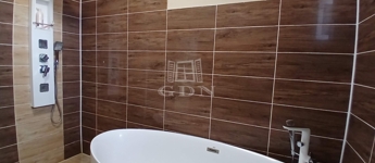 • felújított, modern stílusú fürdőszoba szabadon álló, ovális káddal