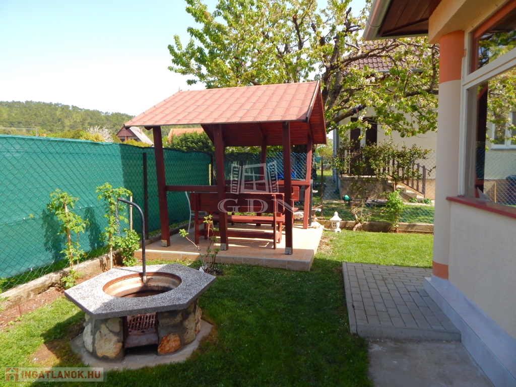 A házhoz tartozik egy 409 m²-es, gondozott virágos -zöldségekkel/gyümölcsökkel teli kert, amely tökéletes helyszín családi és baráti összejövetelekhez,grillezővel, kerti kiülővel és bográcsozóval együtt.
