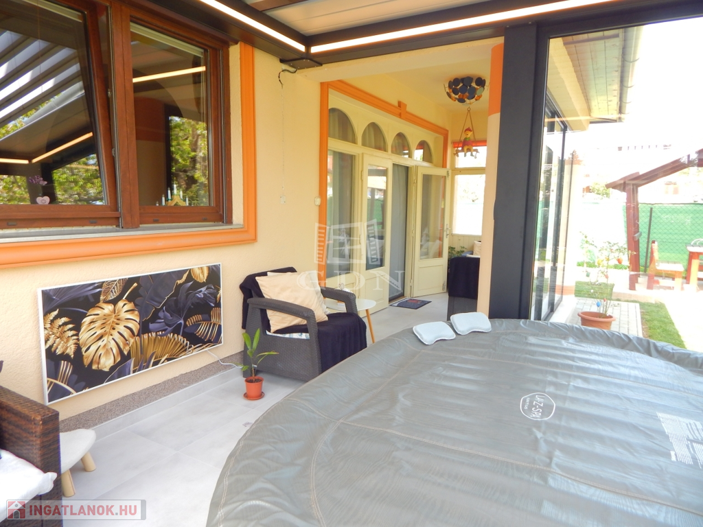 A lakóteret 2024 őszén a Sollis által kialakított ultramodern , elektromos tetőszerkezettel, tolóajtókkal,ZIP árnyékolókkal és 25 m²-es télikerttel egészítették ki, melybe 7 személyes jacuzzi és pihenő-olvasó sarkokat is beépítettek. Az emeleten egy 2 m²-es erkély teszi még vonzóbbá a Balatoni panorámát. A fűthető télikert ideális hely a kávézáshoz, nyugodt olvasáshoz,home office munkához vagy pihenéshez minden évszakban.