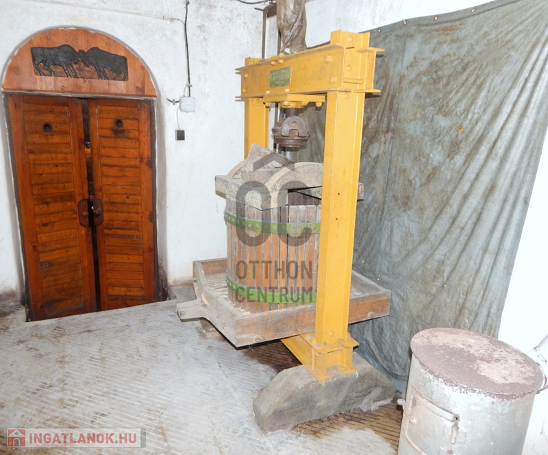 A ház alatt hatalmas borospince került kialakításra, melyből gyönyörű társalkodót lehet varázsolni. Az épület alatt garázs is helyet kapott. A terület közel 2000 nm-es, melyen gyümölcsfák illetve szőlőültetvények vannak.