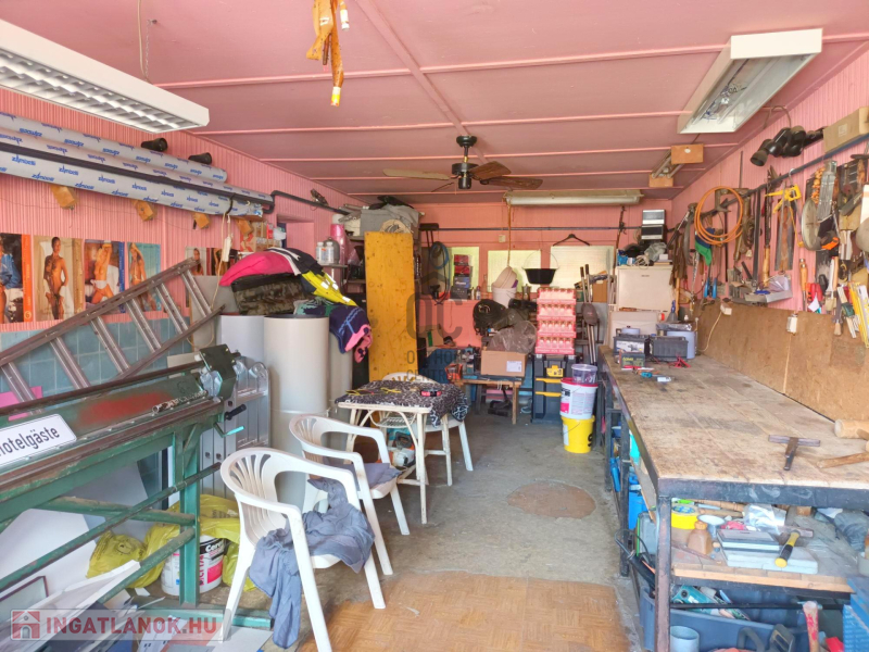 Az épület mögött egy különálló, külön bejáratú, régen szépségszalonként működő 2 x 16 nm-es egybenyíló épület van. Jelenleg műhelyként/tárolóként funkcionál, akár újra üzletként, vagy garázsként (2 férőhely), műhelyként használható. Itt is kiépítésre került a víz- és villanyhálózat, tusolót, wc-t is találunk, illetve szerelőaknát is.