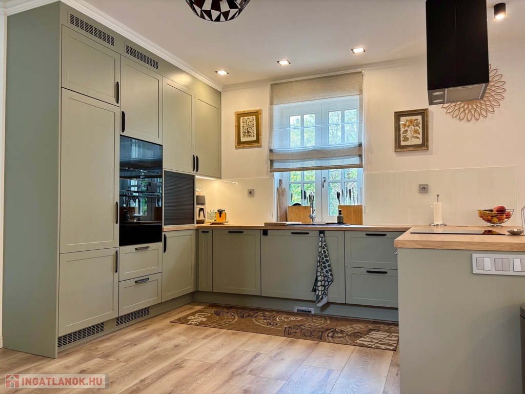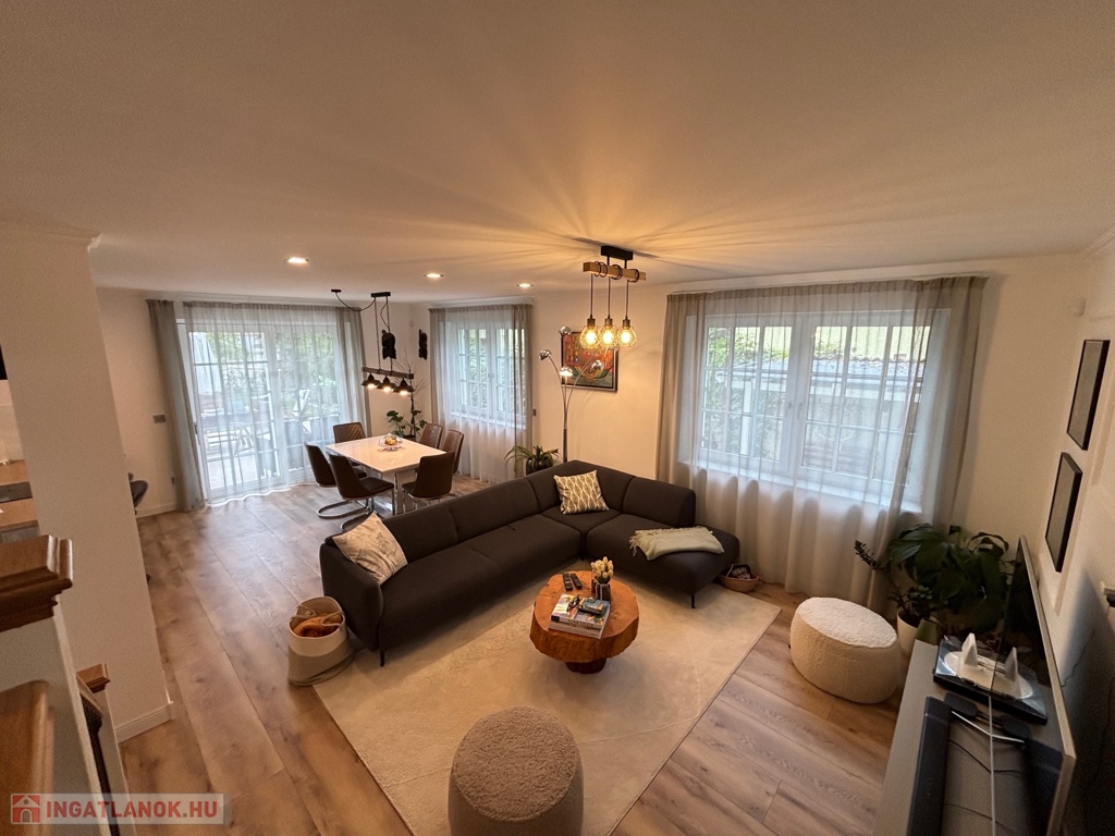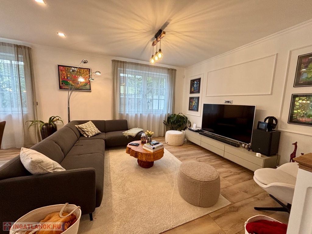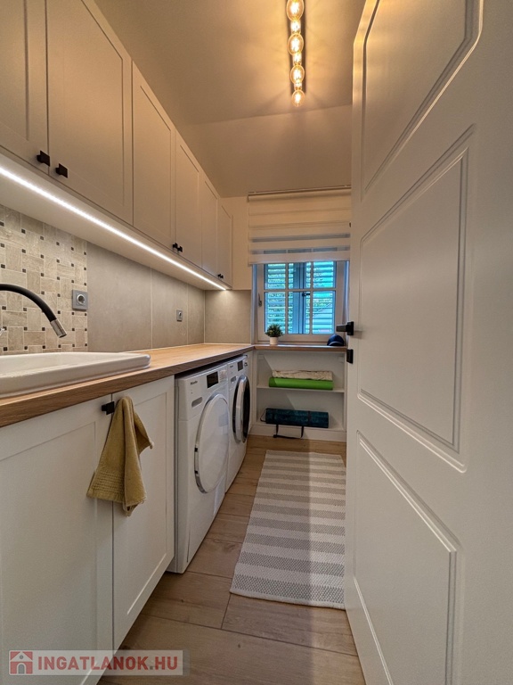 Kivételes lehetőség a II. kerület egyik legkeresettebb részén! Eladó egy frissen elkészült, amerikai stílusú luxusvilla, amely modern eleganciájával és kimagasló műszaki tartalmával valódi ritkaság a piacon. Főbb jellemzők: Nettó alapterület: 205 m² Terasz: 50 m² + minden szobához 4–6 m² erkély Telek mérete: 800 m², parkosított kert Elrendezés: kétszintes, átgondolt alaprajz, tágas terek ✨ Belső kialakítás: A földszinten elegáns előtér, világos, amerikai stílusú konyha–étkező–nappali egy légtérben, mely a családi élet központja. Ezen a szinten található egy vendégszoba saját fürdővel és WC-vel, kamra, tároló és gépészeti helyiség. Az emeletre vezető impozáns lépcső egy három hálószobás részhez érkezik, mindegyik saját fürdőszobával és erkéllyel. Két hálószobához külön gardrób, valamint mosókonyha és közlekedő is tartozik. ⚙️ Felszereltség és technológia: Daikin hőszivattyú (H-tarifa) Távvezérelhető padló- és mennyezetfűtés/-hűtés, helyiségenként szabályozható Riasztó, IP kamerarendszer Központi porszívó, vízlágyító Robotfűnyíró, automata öntözőrendszer Külső tér és extrák: A gondosan parkosított kert nyugalmat és intimitást biztosít. Kétállásos fedett gépkocsibeálló elektromos kapuval és autótöltő előkészítéssel Kültéri műhely / motortároló Dél–nyugati fekvésű, tágas terasz – tökéletes pihenésre és vendégfogadásra Ez az ingatlan a modern luxus, a kényelem és a zöldövezeti élet tökéletes harmóniáját kínálja. Tökéletes választás azoknak, akik prémium minőségű, új építésű otthont keresnek Budapest egyik legnyugodtabb, mégis központi részén.