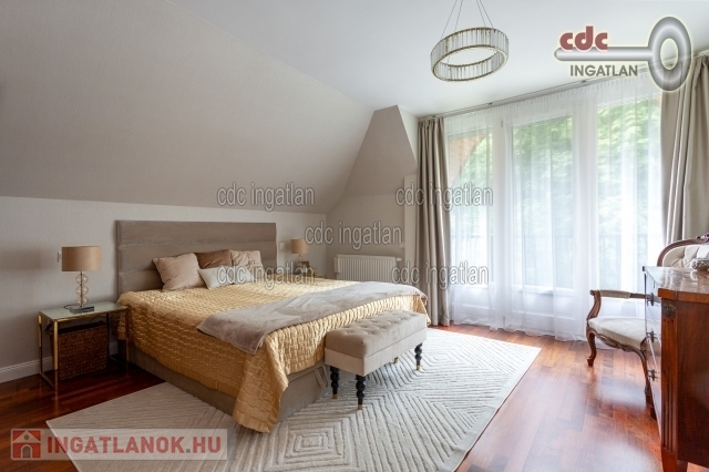 EXKLUZÍV OTTHON ELADÓ BUDALIGETEN! II. kerületben, Budaliget egyik legnívósabb részén, közel a francia iskolához kínáljuk megvételre ezt az 540 m2-es elken lévő, 270 m2-es, 3 szintes, 7 szobás családi házat. Az ingatlan csendes helyen, erdő közelében helyezkedik el gyönyörű panorámával a környező hegyekre. A házat tökéletes elrendezés és a hatalmas üvegfelületeknek köszönhetően természetes fényben úszó belső terek jellemzik. Az átépítés során magas minőségű, prémium anyagok kerültek felhasználásra. A földszint kertkapcsolatos amerikai konyhás nappalival, vendégszobával, mosdóval és gardróbbal rendelkezik. Az emeleten 3 tágas hálószoba, melyből az egyik fürdőszoba kapcsolatos, 2 fürdőszoba, 2 gardrób szoba és közlekedő került kialakításra. Az alsó szinten két szoba, fürdőszoba és konyha terasszal található. Ennek a szintnek külön bejárata is van, így tökéletes lehetőség vállalkozásra, vagy egy elszeparált külön bejáratú lakásnak is. A fűtést Vaillant kondenzációs gázkazán, kandalló és Daikin hűtő fűtő klíma biztosítja. Biztonsági bejárati ajtók, riasztórendszer, elektromos redőny szúnyoghálókkal kerültek beépítésre. Automata kapu, garázskapu, kényelmes garázs, fedett és nyitott kocsibeálló áll rendelkezésre. A ház kívülről hőszigetelt, a kert gondozott, automatikus öntözőrendszerrel ellátott. Ez a ház tökéletes választás azok számára, akik egy exkluzív, nyugodt környezetben szeretnének élni, miközben élvezhetik Budapest egyik legszebb kerületének előnyeit.