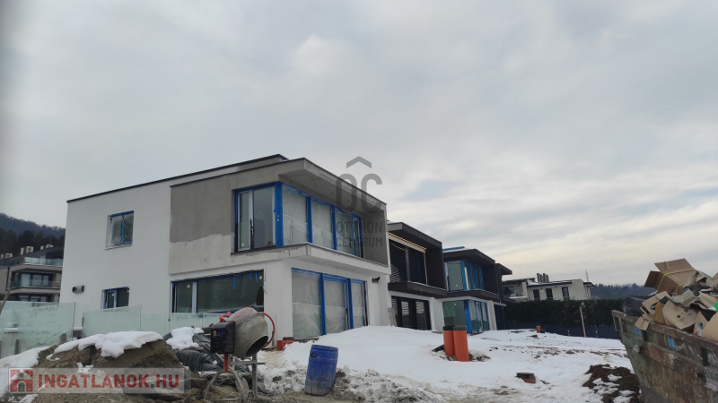 De III. In het woonpark Harsánylejtő in de wijk kun je kiezen uit nog eens 4 geschakelde woningen met panoramisch uitzicht - voor de eerste koper tegen een gereduceerde prijs! LOCATIE Harsánylejtő, de NO-helling van Testvérhegy, begon enkele jaren geleden met de bebouwing. Hierdoor zijn er veel nieuwe, moderne gebouwen met grote tuinen en pas geasfalteerde straten - kortom, de omgeving is zeer gecultiveerd en aangenaam. De 4 geschakelde woningen bevinden zich op de top van het wooncomplex, van waaruit u kunt genieten van een niet te missen uitzicht op de omliggende en in de verte gelegen bergen. Boven de straat ligt het natuurgebied Hármashatár-hegy, dus het nabijgelegen bos zorgt voor schone lucht, een aangename geur, fluitende vogels en volop wandelmogelijkheden. Ook DE INFRASTRUCTUUR wordt steeds beter, - vanuit het centrum van het woonpark ben je vlot met het openbaar vervoer in het stadscentrum. Alle winkelmogelijkheden zijn te vinden op de nabijgelegen Bécsi út. De aard en stijl van het GEBOUW past bij de omgeving, - het kenmerkt zich door een moderne, strakke vormgeving. De twee helften zijn alleen verbonden door de garage, er zijn dus geen gemeenschappelijke muren en alle wooneenheden hebben onafhankelijke straatingangen en aparte tuinen. IN HET INTERIEURONTWERP is functionaliteit de leidraad: - apart woonniveau - slaapniveau - ruime ruimtes - door de enorme raampartijen en glasvlakken valt er licht naar binnen en kunnen we genieten van het panorama in alle richtingen. WOONUNIT 4 heeft een netto oppervlakte van 178 m², een terras van 23,5 m² en is omgeven door een tuin van 580 m². Het bijzondere is dat het drie interne verdiepingen heeft, waarbij de bijkeuken, berging en sauna zich in het souterrain naast de dubbele garage bevinden. Op de begane grond bevindt zich naast de woonkamer met Amerikaanse keuken een studeerkamer (net als de 5e kamer in de woning), die kan worden omgebouwd tot keuken, waardoor de leefruimte vergroot wordt. De aangegeven PRIJS heeft betrekking op de TURNKEY-staat, waarin het volgende is opgenomen zonder aanspraak te maken op compleet: - Warmtepomp koel-verwarmingssysteem - Centraal ventilatiesysteem, premium (Zehnder) type - Enorme glasoppervlakken, hef-schuif uitvoering in de woonkamer kamer - Gemotoriseerde zonwering op alle deuren en ramen - Premium binnendeuren - Hoogwaardige koude afdekkingen voor binnen en buiten - Vinylvloeren - Hansgrohe kranen - Duravit sanitair - Alarmsysteem - Elektrische schakelaars en stekkers van glas Verwachte ingebruikname: 2e kwartaal van 2024. REFERENTIE: in het woonpark zijn verschillende naslagwerken van de bouwer te bezichtigen