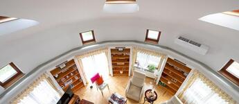 A 1998-ban épült, masszív, 38 cm-es Porotherm téglából készült épületet az eredeti építtető és tervező gondos odafigyeléssel tájolta, a belső tereket pedig funkcionálisan és esztétikusan alakította ki. A ház egyik különleges eleme a szinteltolásos, körcikk alakú nappali, amely galériás kialakításával, kandallójával és nagy belmagasságával lenyűgöző központi teret biztosít – ez a ház valódi szíve.