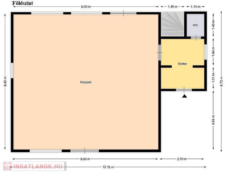 A felső részen még egy hálószoba kialakítása lehetséges.