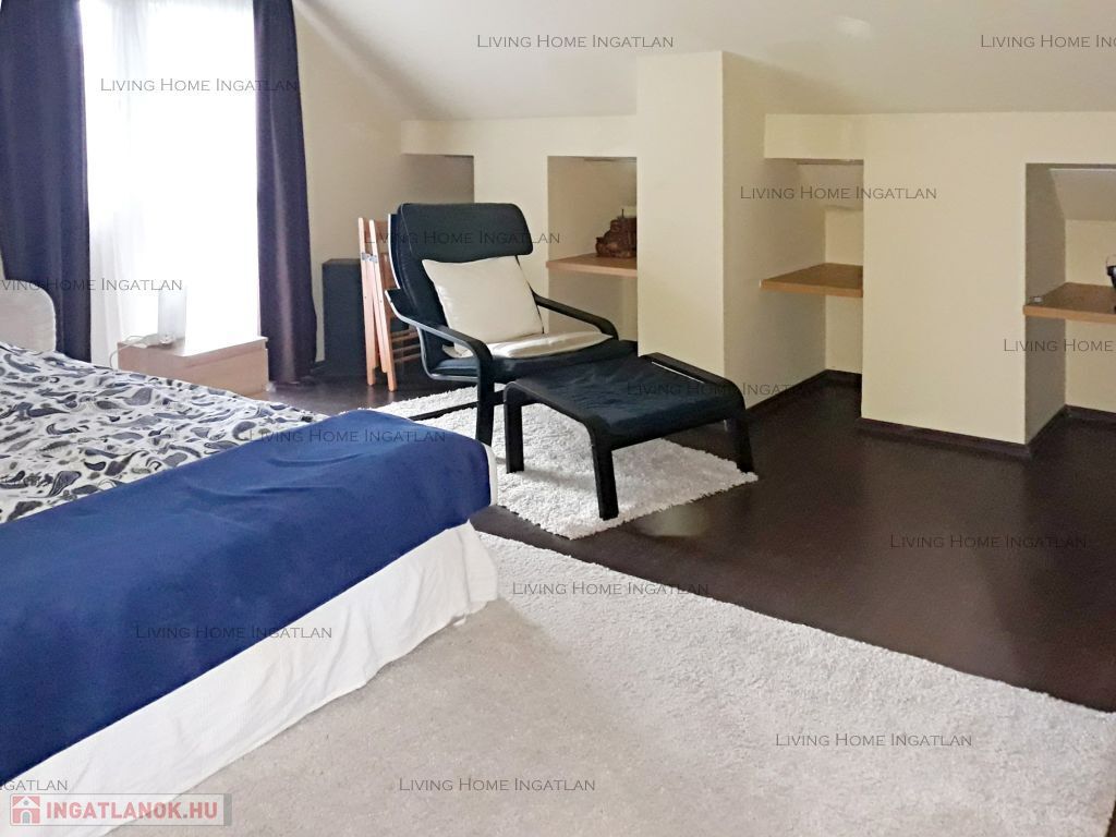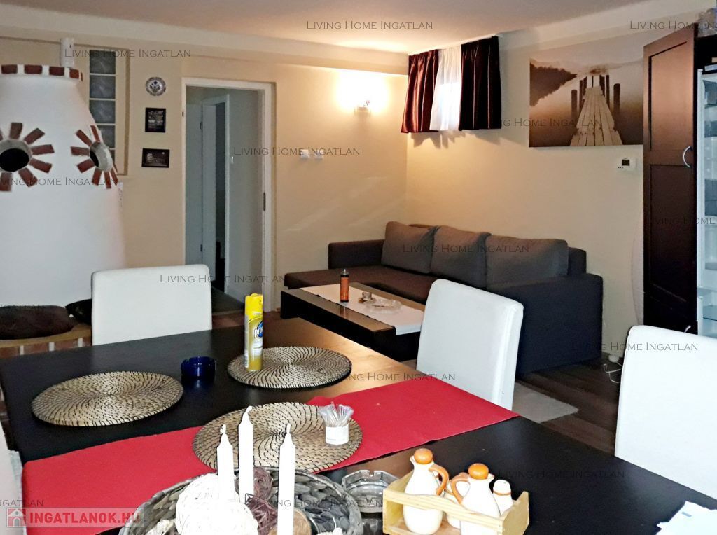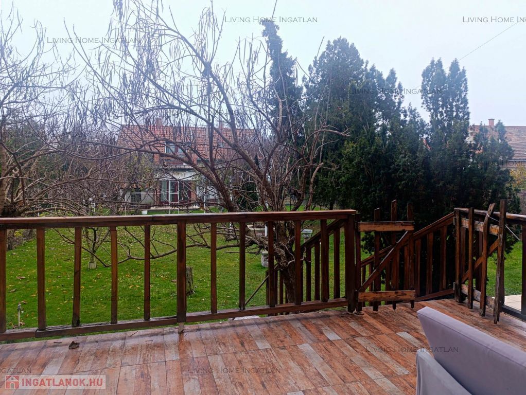 Az épület a kert hátsó részében helyezkedik el. Pince, földszint, emelet, szintenként 70 nm-es. Földszinten amerikai konyhás nappali, fürdőszoba, emeleten nappali és hálószoba. Akár bérbeadásra is kiválóan alkalmas.