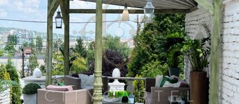 A villa teraszairól lenyűgöző panoráma tárul elénk a városra és a Gellért-hegyre. A teraszosan kiépített díszkert a Citadellára és a városra nyújt kilátást. A földszinti apartmanokhoz hangulatos koktél-, szivar-, grill-, kávé- és merengő teraszok tartoznak, amelyek tökéletes helyszínt biztosítanak a lenyűgöző panoráma élvezetéhez, valamint a pihenéshez és relaxáláshoz is.