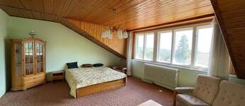 Az emeleti szinten kialakításra került egy keleti fekvésű, utcai nézetű, szép kilátással rendelkező, tágas szoba, egy hátsó kertre néző, nyugati fekvésű, erkélykapcsolatos szoba, egy erkéllyel rendelkező, benapozott közlekedő és egy kényelmes méretű fürdőszoba. Igény szerint a szinten kialakítható 3 szeparált háló és 2 fürdőszoba is.