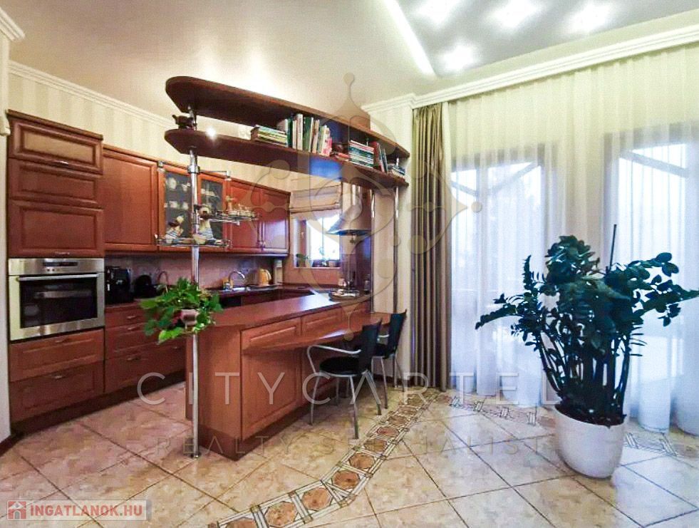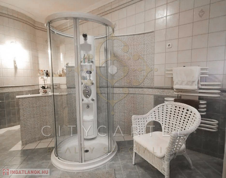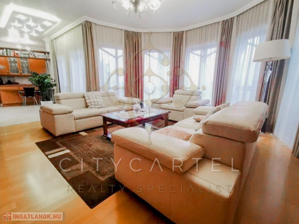 Több mint kétezer nm, teraszos kialakítású telken épült. 5 háló, 6 fürdő helyiség, + 4 szoba, alagsorban, medence, szaunák. Minden adott, amire egy családnak az igényes, egészséges regenerálódáshoz szüksége van. Dupla garázs, a gyerekeknek is a kert egy paradicsom.