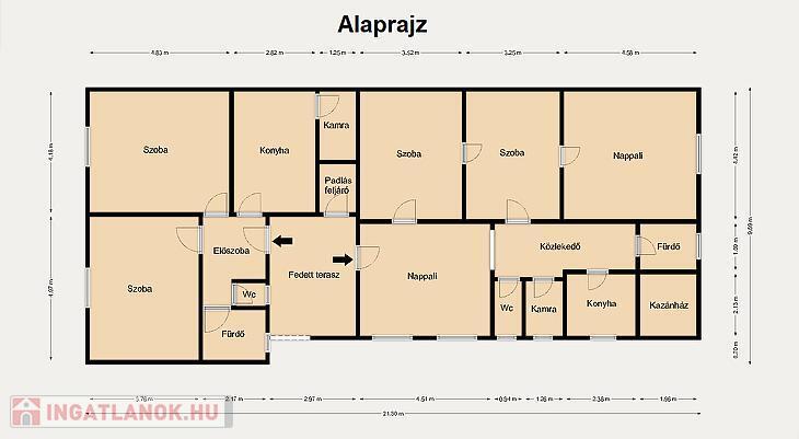 • Jó állapotú első házrész, felújítandó hátsó rész