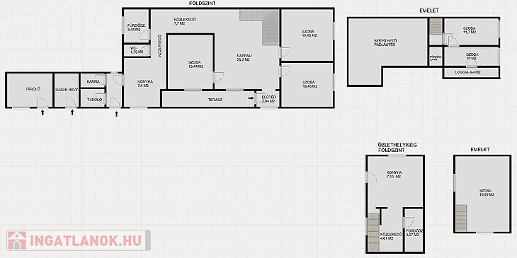 Az üzlethelyiség 41 m2, belső 2 szintes, 1 szobás, jelenleg lakásként funkcionál, de szeparálható így akár irodaként, üzletként is működhet.
