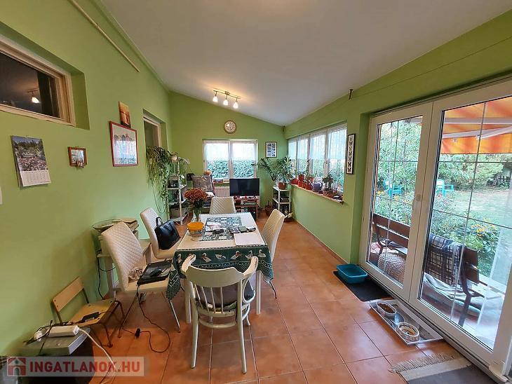 A földszinti részen, konyha, nappali, előszoba, fürdőszoba, mellékhelyiség és zárt terasz található. A 17 m2-es zárt teraszon keresztül lehet megközelíteni a kertet, de igény esetén a terasz szobaként is funkcionálhat.